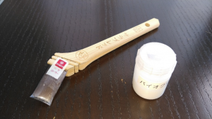塗装前にブロアーで飛ばすか、無ければラスター刷毛等で掃いて清浄な面とするよう