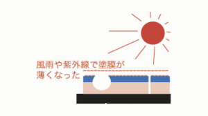 ※2)チョーキング・・塗装の表面が紫外線、風雨、熱等によって樹脂分が劣化して粉化してしまう状態