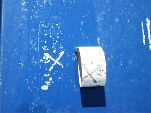 傷んでいそうな所(軒先など)をカッターで4~5㎝の長さで下地まで届く切り傷を十文字に付けます。出来れば定規を当てて行った方が良いでしょう。カッターで切った上にテープを貼り剝がした時の残り方で劣化度合いを判定する方法です。